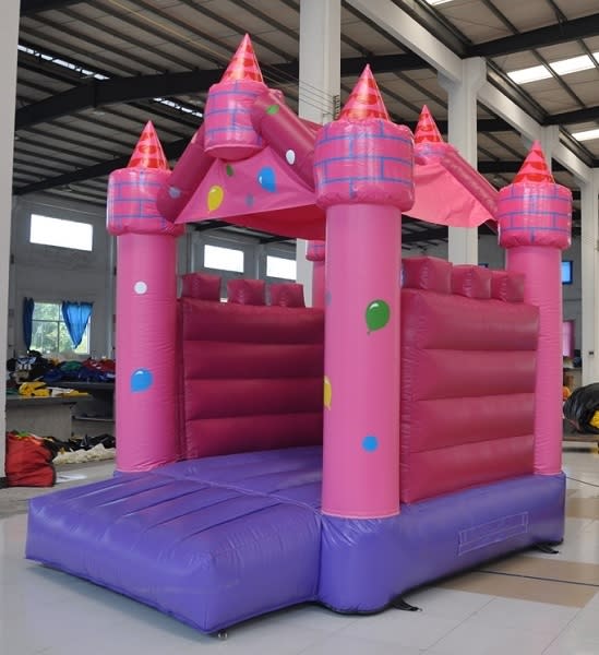 The bright pink colours make this bouncy castle very versatile for any pink party, event or celebration! The bouncy castle also has some shade cover for protection from the sun and light rain.