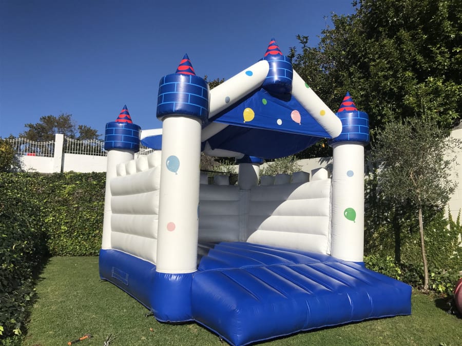 The versatile blue and white colours makes it a great option for a variety of events, parties or celebrations. This castle also offers some shade cover for protection from the sun and light rain.
