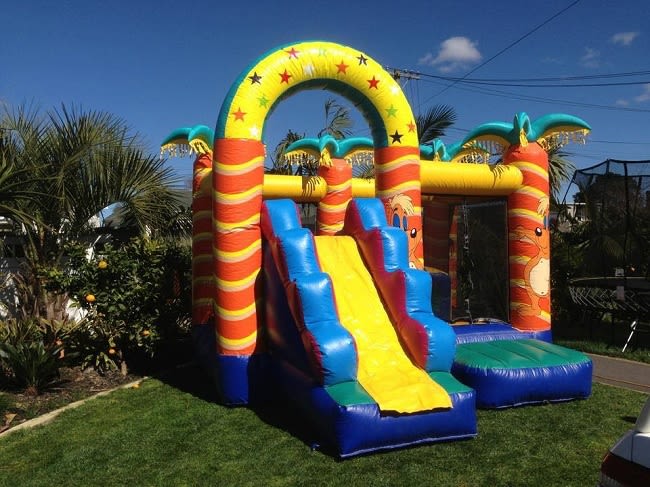 Do you want to bring the tropics to your back yard, local party, hall, school or event This tropical slide bouncy castle is fantastic to offer a colourful and island style atmosphere.