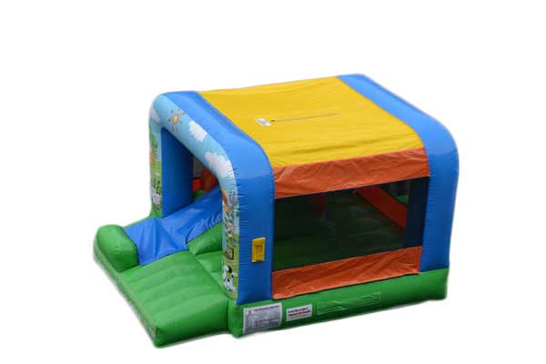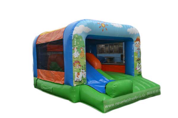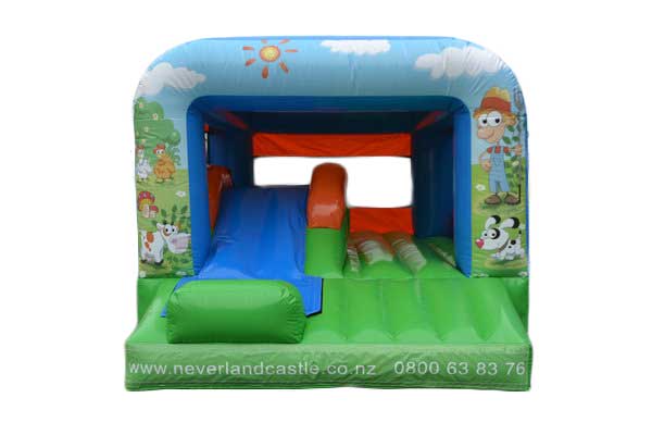 This adorable funny farm castle puts great emphasis on the comical side of farm life. A pair of cute animal faces flanks either side of this cute funny farm bouncy castle, welcoming participants to jump all day! With caricatures of classic farm animals, from the friendly cow to the charming rooster, this artwork is sure to draw a crowd.