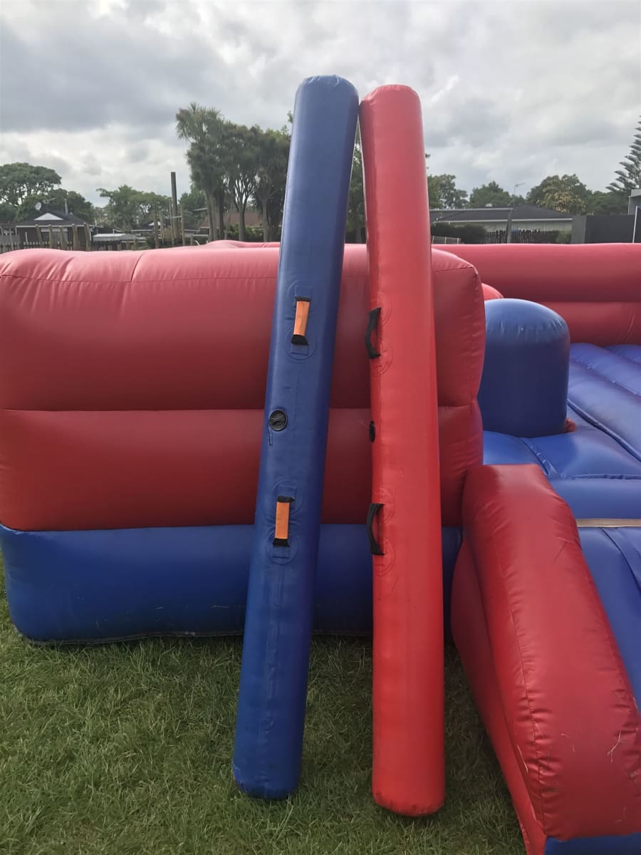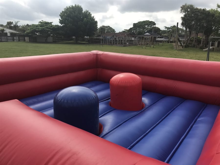 This big jousting arena offers lots of fun for the competitors and the crowd. Two gladiators head into the square and stand on their chosen stand, where they attempt to hit their competitor off. Watch one of them duck, bash, swerve and bop their way to glory.