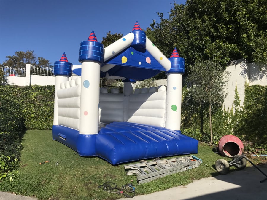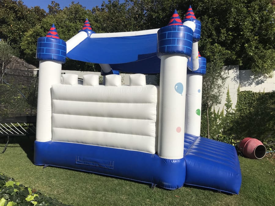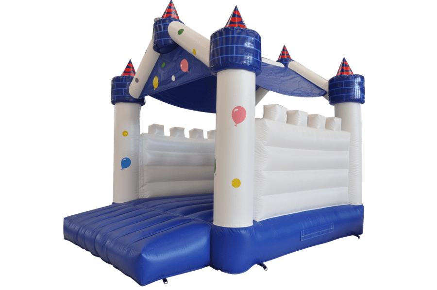 The versatile blue and white colours makes it a great option for a variety of events, parties or celebrations. This castle also offers some shade cover for protection from the sun and light rain.