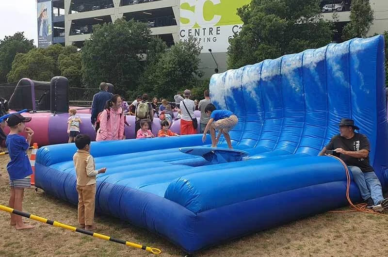 3 hour hire $1249 Perfect for corporate functions, beach-themed parties, office events, fairs, community festivals, summer galas, stag/hen parties, and more! Designed for ages 9 and up, with adjustable speeds to match all skill levels – from novice riders to seasoned surfers. Featuring: