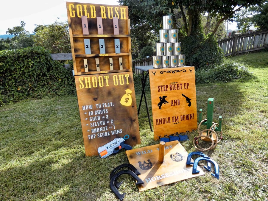 This fun Tin Can Game comes with a Wild West feel to it. The painted front board is 65cm high and 46cm wide and leans against a folding table which is 65cm high. On top of the folding table, you stack the 10 x decorated Tin Cans and try and beat your opponents. Included are 3 x Bean Bags to throw at cans. Suitable both indoors and outdoors.